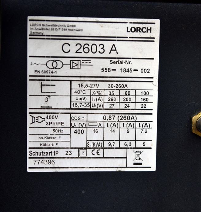 Katalog/tehnički podaci: http://www.currle-zinner.de/download/warengruppen/schweissanlagen/e-Hand-mig-mag-wig/cz_schweissanlagen_mig-mag_lorch_%202013_%20v-1.pdf