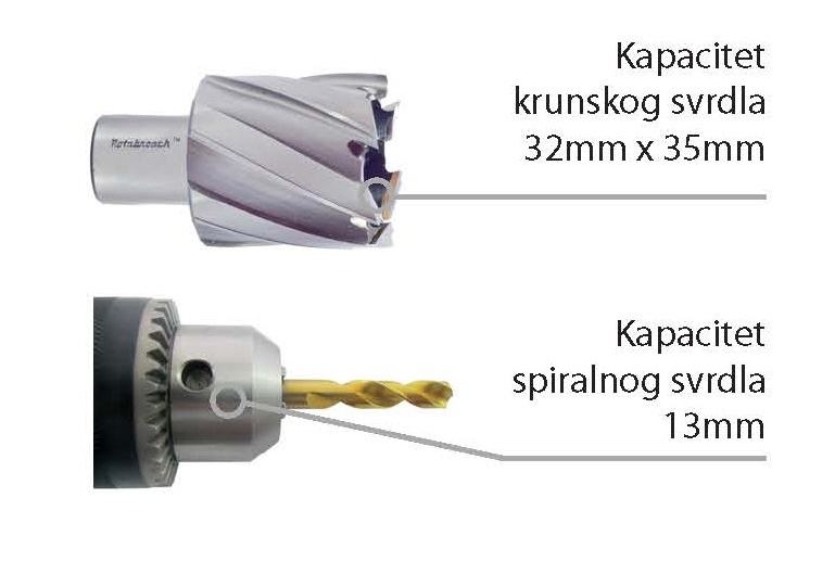Maks. kapacitet bušenja - ø32 x 35mm dubine