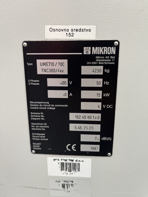 CNC 3-osni stroj: MIKRON UME 900