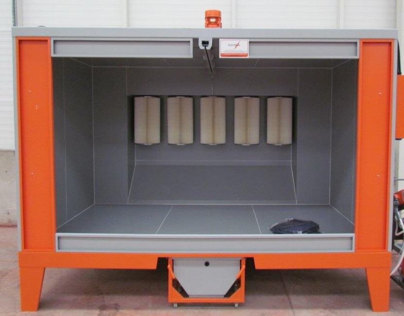 Ručne kabine za nanošenje praha elektrsostatskim postupkom, sa ciklonom i završnim filterom ili sa filter patronama.