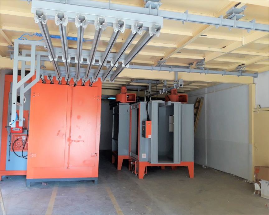 Ponuda ručnih linija za plastifikaciju metala, opremljenih sa tračnim vodilicama (transporterom), kabinom, peći, sistem "ključ u ruke", komplet .