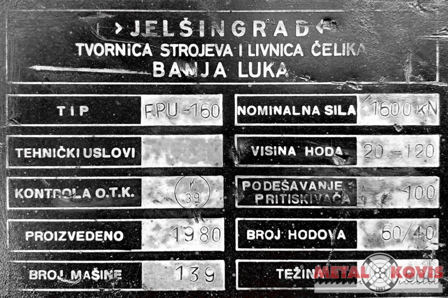 jelšingrad; 160t; 160 t; ekscentar preša; preša; štanca; rabljeni stroj; rabljeni strojevi; rabljeno; preša ekscentar;