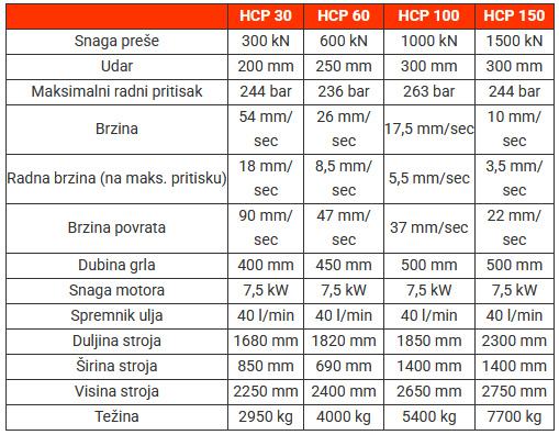 Hidraulične preše - C-okvir Sahinler HCP 30-60-100-150 serija