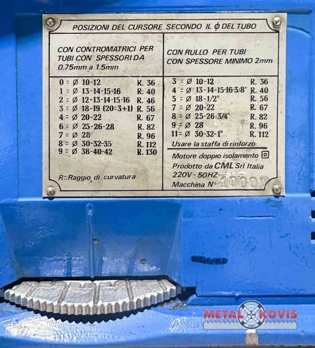 • alati za savijanje : Ø32 mm | Ø30 mm | Ø20 mm | Ø14 mm