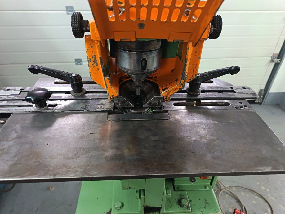Ima funkcije probijanja rupa(okruglo,kocka,pravokutnik,brava,eliptične...),odsjecanja kvadratnih i okruglih šipki,sječenje flahova i limova,sječenje kutnih profila(vinkl)