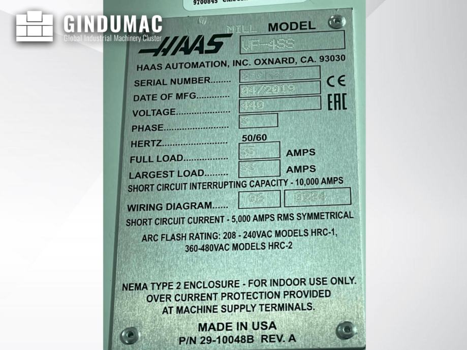 Ovaj HAAS VF4SS rabljeni vertikalni obradni centar proizveden je 2019. godine u Sjedinjenim Državama. Opremljen je HAAS upravljačkom jedinicom i ima Ethernet sučelje. HAAS prijenos 5. osi omogućuje korištenje HAAS rotacijskog stola ili indeksera. Stroj raspolaže s 1 GB memorije za programe, 15” COLOR LCD daljinskim monitorom, USB priključkom s ključem za zaključavanje memorije i WiFi vezom za HAAS kontrolu. Na stroju je ugrađeno mnogo opcija koje se mogu uključiti.