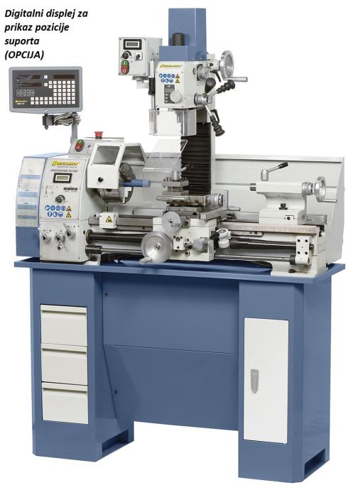 Naš top model PROFICENTAR 700 BQV, idealan je za finumehaniku, obrazovanje, servis, zanatske radnje,.... Bušenje, glodanje i tokarenje na malom prostoru. Mašina ima standardno ugradžen digitalni pokazivač za dubinu bušenja, i prikaz broja okretaja, a kao opciju možemo ugradit iz digtalni pokazivač sa mernim letvama za prikaz pozicije suporta kod tokarenja, sve za veču udobnost i smanjit vreme kod rada sa mašinom. Ovaj model ima i veoma veliku bušotinu u osovini fi 38 mm.