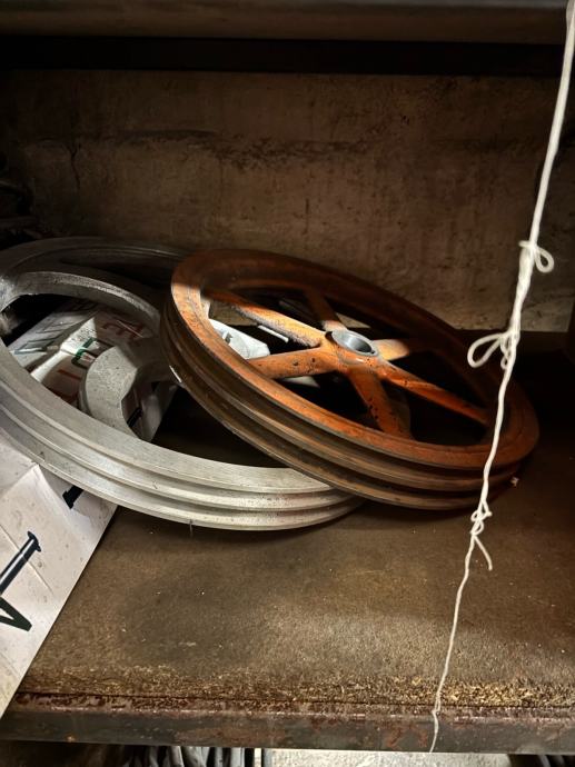 Savijačica za lim mehanicka sa mogućnošću ugradnje elektromotora. Uz savijačicu idu dva elektromotora i remenice