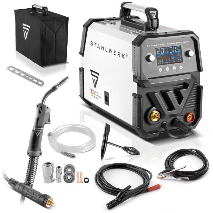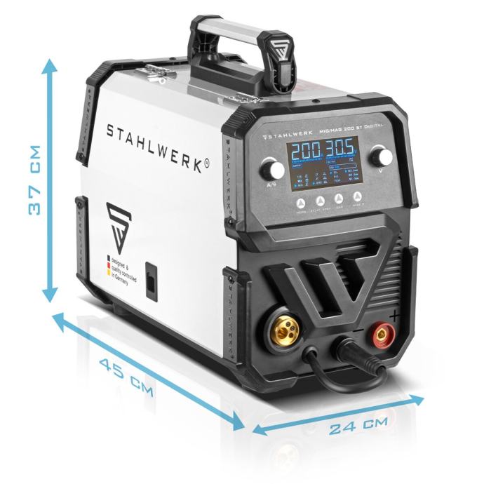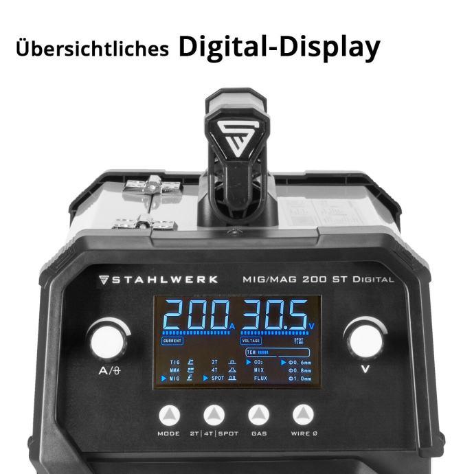 STAHLWERK aparat za zavarivanje MIG MAG 200 ST Digitalni IGBT aparat za zavarivanje inertnim plinom | Inverter sa 200 A, spot funkcijom, sinergijskim dodavanjem žice, FLUX i MMA | ARC funkcija