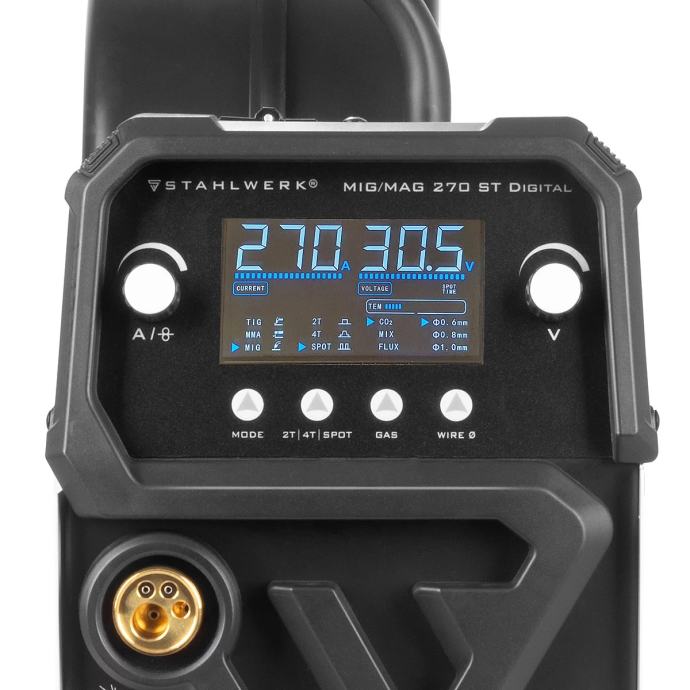 STAHLWERK aparat za zavarivanje MIG MAG 270 Digital IGBT 4-u-1 aparat za zavarivanje na inertni plin | Inverter s 270 A, sa funkcijom spotiranja, sinergijskim dodavanjem žice, 4-valjnim pogonom, FLUX-om, kontaktnim TIG-om i MMA zavarivanjem | ARC funkcija