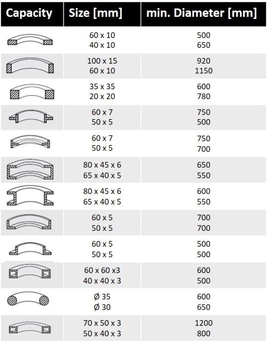 *mnogo različitih mogućnosti pomoću univerzalnih valjaka. Geometrije profila savitljiva