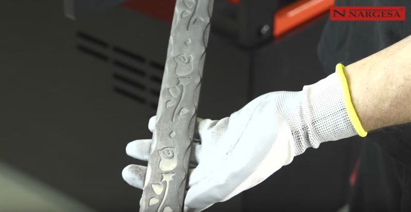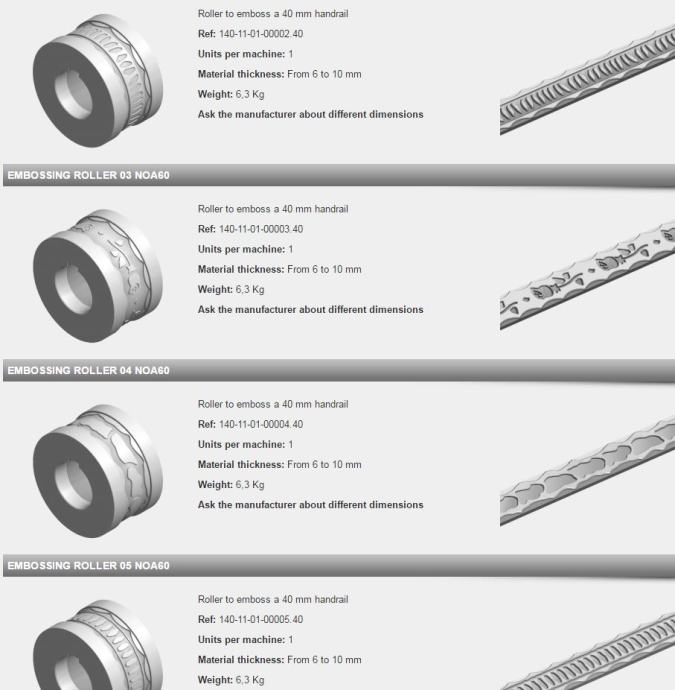 Stroj za prokivanje elemenata kovane ili ukrasne umjerničke bravarije, za visokoserijsku obradu cijevi, šipki i flahova prokivanjem ili graviranjem ukrasnih ornamenata, Nargesa NOA60. Vrlo jednostavno upravljanje, dovoljan je jedan operater za opskrbu stroja materijalom, materijal se automatski izbacuje iz linije nakon obrade.