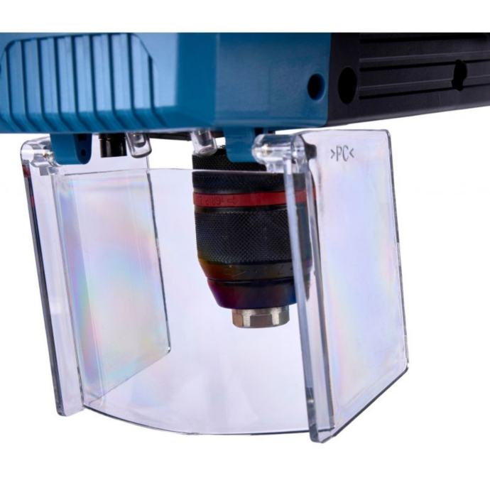 Bušilica je opremljena dvostrukim križnim laserom koji precizno pokazuje mjesto bušenja, kao i LED rasvjetom za poboljšanu vidljivost radnog područja. Elektronička upravljačka ploča s LCD zaslonom omogućuje praktično podešavanje brzine, kontrolu dubine bušenja i brzu aktivaciju lasera i rasvjete. Cijela jedinica izrađena je od izdržljivih i robusnih materijala, što osigurava dugi vijek trajanja.