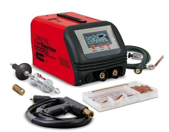 Uređaj za elektrootporno - točkasto zavarivanje. Prednosti: mikroprocesorska kontrola zavarivanja, automatsko podešavanje parametara zavarivanje prema odabranom alatu i debljini lima, jednostavna promjena alata koji se koristi, mogućnost dvostranog punktiranja Tehničke karakteristike: Priključni napon: 400V; Struja zavarivanja: 3000A, maksimalni učinak zavarivanja : 1,5 + 1,5 mm Dimenzije: 390x260x225mm; masa: 29kg Isporuka: aparat, pištolj za jednostrano punktiranje, uteg za izlačenje, komplet nastavaka za izvlačenje i grijanje lima, stezaljka mase