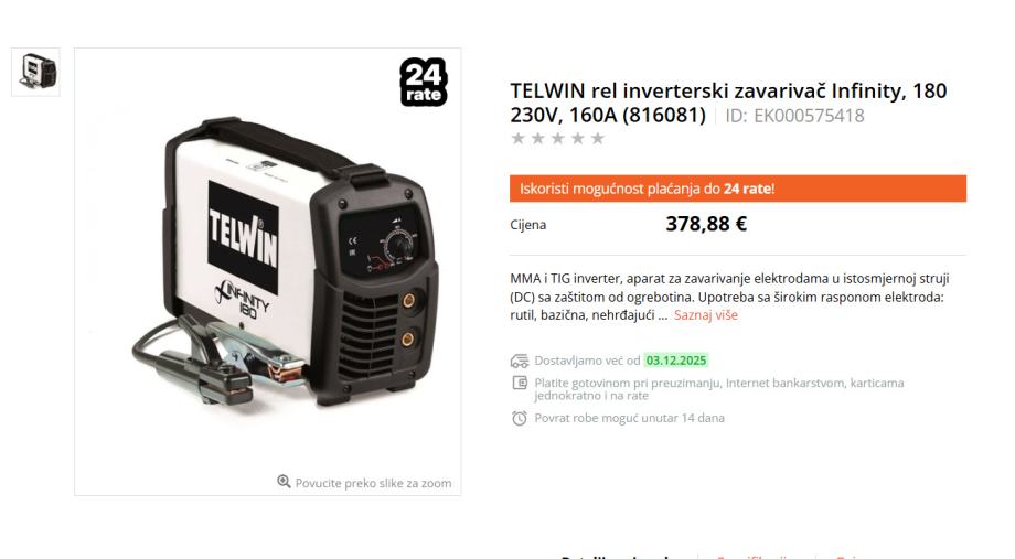 PRODAJEMO TELWIN INFINITY 180 INVERTERSKI ZAVARIVAC 180 230V 160A.
