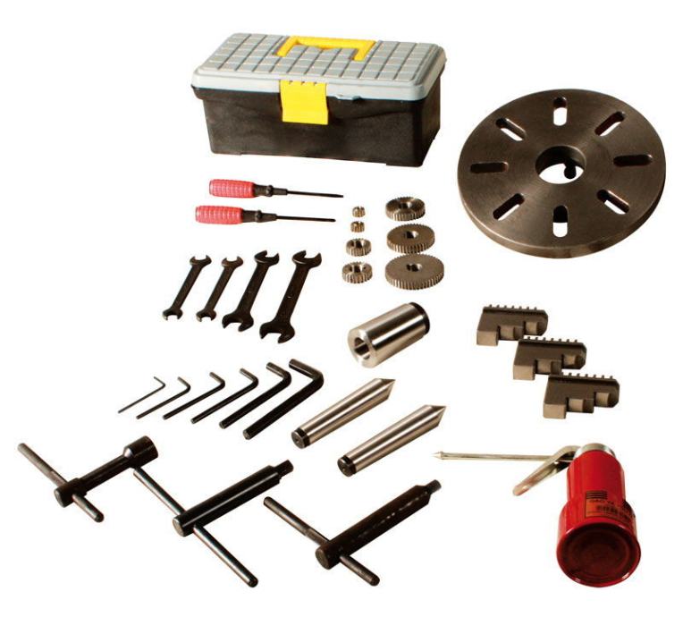 - uključeno u isporuku: 3-čeljustna stezna glava Ø160mm, prednja ploča, štitnik stezne glave, stalak za stroj, zaštita od prskanja, ravnomjerno odlaganje, slijedno odlaganje, ladica za čipove, četverosmjerni držač alata, promjena stupnjeva prijenosa, 2x MT3, kotačić s navojem, ključni alati, reduktor MT5 / MT3, svjetiljka