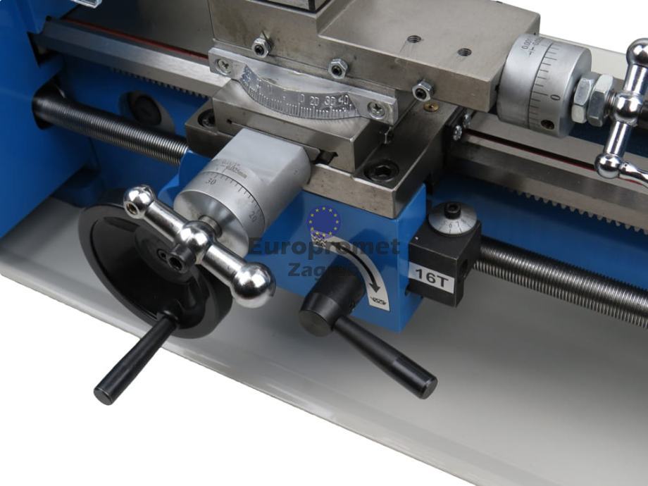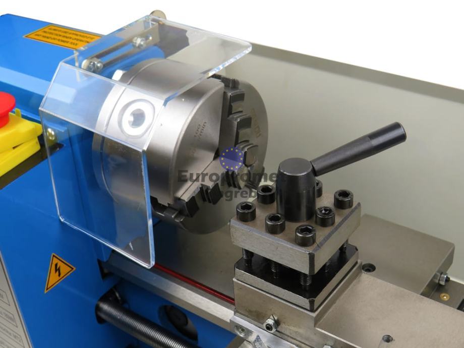 Kompaktni tokarski stroj za metal, izdržljive gradnje, namijenjen malim radionicama, modelarima i hobistima, okreće uzdužno i poprečno. Mali tokarski stroj optimalno je prilagođen za obradu čelika, obojenih metala i sintetičkih materijala. Komponente najviše kvalitete pružaju izvrsne performanse obrade i pouzdanost uređaja.