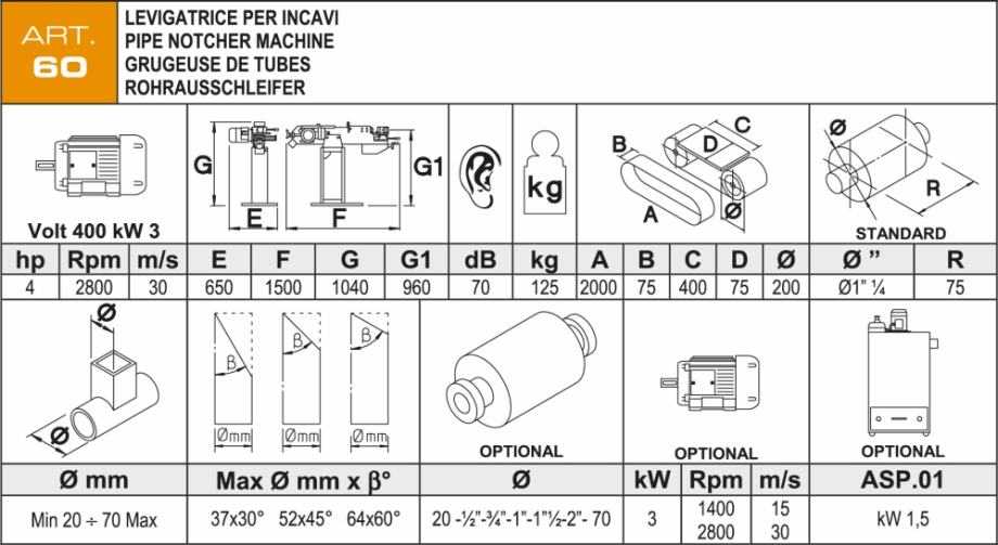 Model ART.60, za promjere cijevi u rasponu 20 - 70 mm (sa opcijskim kontaktnim valjcima).