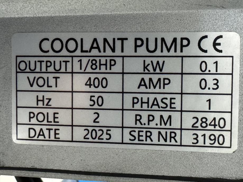 Pumpa rashladne tekućine: 0,1 kW, 400 V, 50 Hz