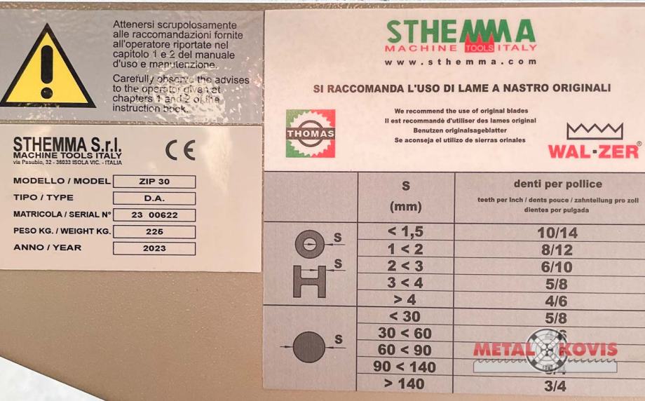 Sthemma; Thomas; ZIP 30 DA; tračne pile; tračna pila; novi strojevi; novi stroj; novo; kapaciteti rezanja; kapacitet rezanja; bimetalni list; pila; pile; list pile; okruglo; pravokutno; kvadratno; ZIP 30 D.A.; ZIP; 30; DA; D.A.;