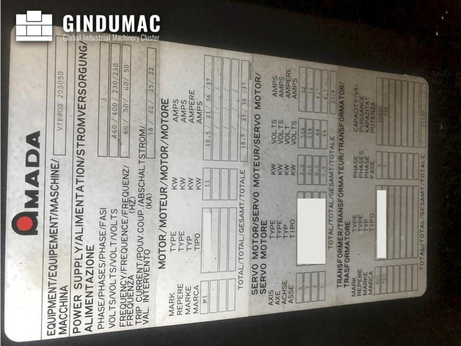 This AMADA Vipros 255 was manufactured in 1997. A robust punching machine featuring a Fanuc 18P control, it offers a maximum punching force of 200 kN and can handle materials up to 6.4 mm thick. The machine supports a maximum workpiece weight of 100 kg and has a working area of 2.540 x 1.270 mm. A great opportunity to buy this AMADA Vipros 255 punching machine. For more information about this punching machine, please reach out to us.