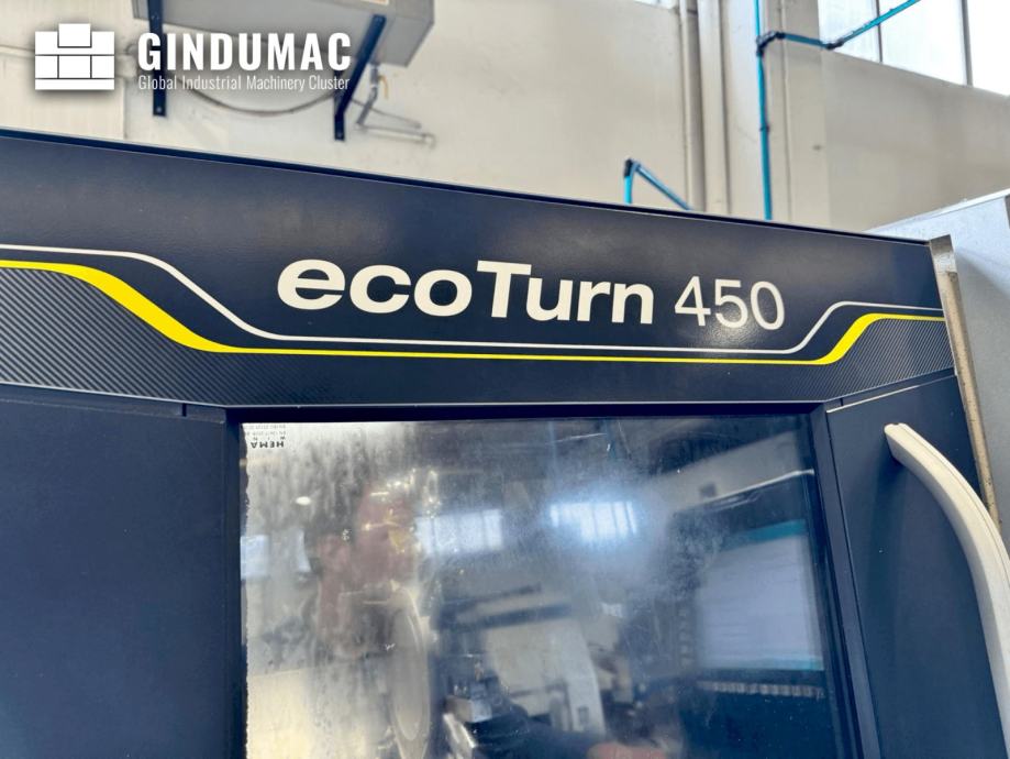 This 3-axis DMG MORI EcoTurn 450 V3 lathe was manufactured in 2015. Equipped with a FANUC CNC, it features a max turning diameter of 400 mm, a distance between tips of 800 mm, and a bar capacity of 80 mm. It includes a 12-position motorized turret, powered tools, and a tailstock. Ideal for precision machining, buy this DMG MORI EcoTurn 450 V3 lathe. Reach out for more information.