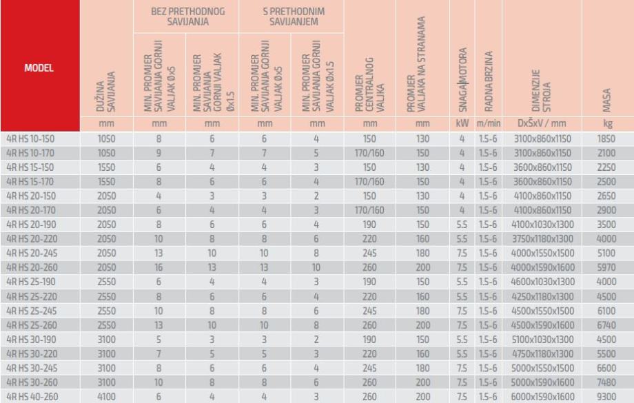 Valjci za kružno savijanje lima (4 valjka) 4R HS serija, Sahinler