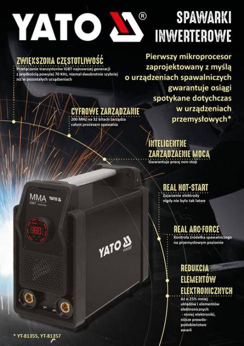 180 A MMA inverterski aparat za zavarivanje temeljen na posljednjoj generaciji IGBT tranzistora, s naprednim značajkama i opcijom DC TIG LIFT zavarivanja. Koristi iskorak na tržištu opreme za zavarivanje u obliku posebno dizajniranog mikroprocesora koji autonomno upravlja cijelim procesom zavarivanja. Smanjenje logičkih sklopova i vlastito uzorkovanje struje zavarivanja ne samo da smanjuju stopu kvarova uređaja, već prije svega čine sam proces zavarivanja mnogo lakšim. Jednostavnost postizanja visokokvalitetnog zavara cijene i profesionalci i oni s malo iskustva. Brzo i intuitivno upravljanje jednim gumbom s klikom. Prikladno za rutilne, celulozne i alkalne elektrode.