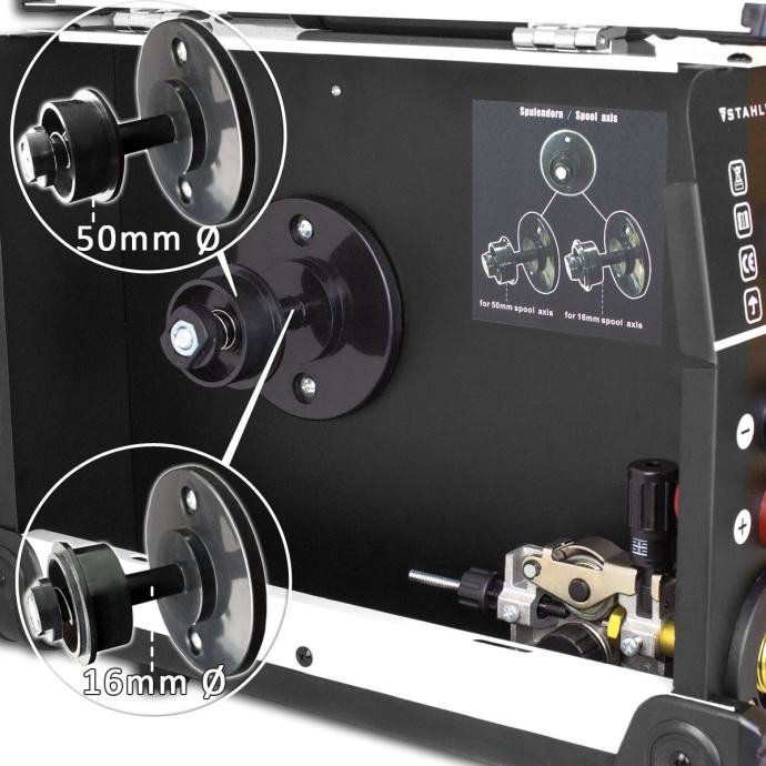 Žičani pogonski kolut - različite debljine žice mogu se koristiti jednostavnom promjenom pogonskog valjka sa 0,6 mm na 0,8 mm i 1,0 mm.