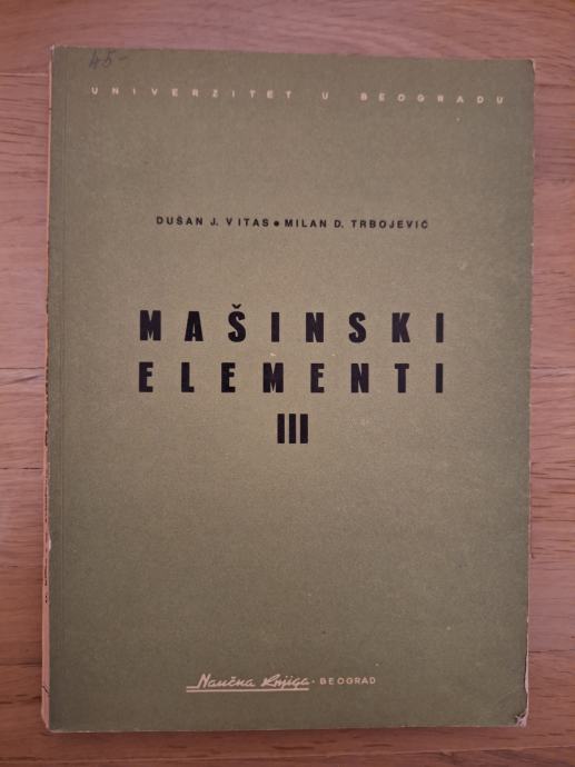 DUŠAN J. VITAS, MILAN D. TRBOJEVIĆ: MAŠINSKI ELEMENTI 3, NAUČNA KNJIGA, BEOGRAD, 1971.
