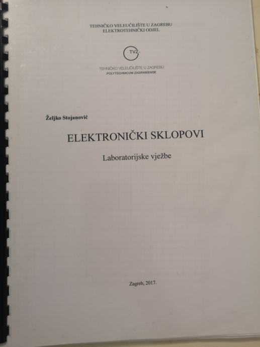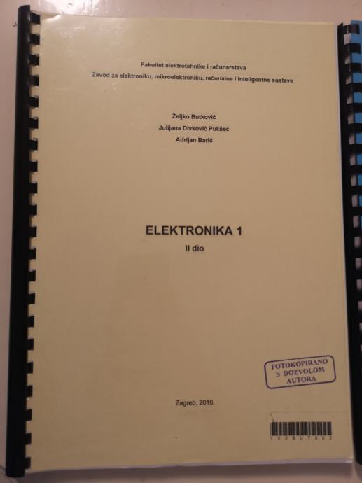 Elektronika 1 - FER (1. i 2. dio) + skripta za laboratorijske vježbe (TVZ) + dajem gratis ispunjenu bilježnicu s predavanja i auditornih vježbi kolegija Elektronički sklopovi s TVZ-a ELO smjer.