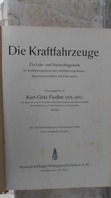 Knjiga o autima:Die Kraftfahrzeuge,od Kurt-Gotz Fiedler,VDI-ATG 1937.g