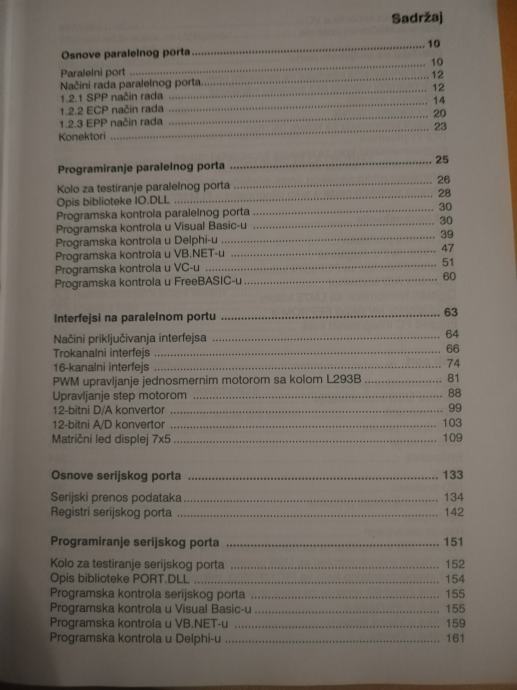 Međutim, na njih je moguće priključiti i druga sučelja pod uvjetom da dobro poznajemo značenje pojedinih signala koji s njima dolaze. Upravo je to i bio cilj ove knjige da čitatelja upozna s takvim mogućnostima. U knjizi su obrade- ni najvažniji portovi: paralelni, serijski | USB priključak kao i sve prisutne IC magistrale. Uz objašnjenja signala svakog porta dati su načini programiranja u različitim jezicima, iako je Visual Basic najviše zastupljen. Također su uz svaki port obrađeni praktični interfejsi sa načinom njihove izrade i programiranja.