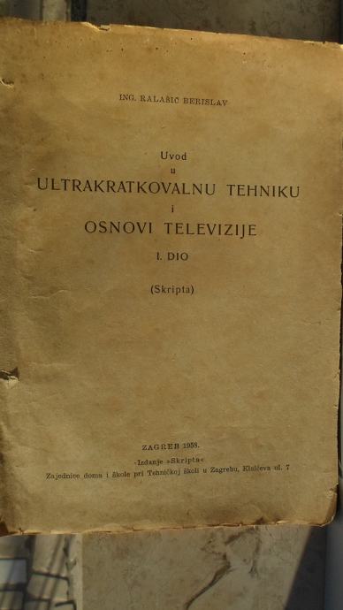 Prodajem skriptu"Uvod i kratkovalnu tehniku i osnove televizije"tiskane na 98 stranica u Zagrebu 1958.godine.Autor je Ing.Ralašić Berislav.