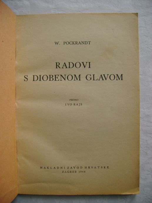 Willy Pockrandt - Radovi s diobenom glavom - preveo Ivo Rajs, izdavač Nakladni zavod Hrvatske, Zagreb 1948. godine, 14 x 20 cm, meki uvez, 96 stranica, ilustrirano.