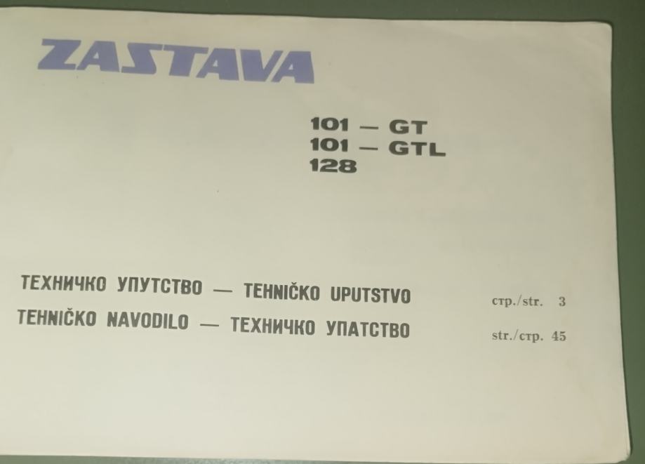Zastava 101 / 128 tehničko uputstvo - 1984.g.