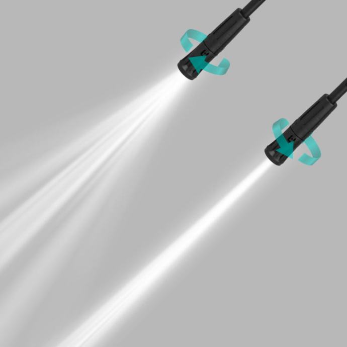 Čišćenje je opremljen fleksibilnom mlaznicom koja vam omogućuje da promijenite tlak vode prema potrebi. Lakom rotacijom mlaznice možete prebaciti između širokog i uskog mlaza, omogućavajući učinkovito čišćenje različitih površina.