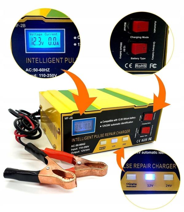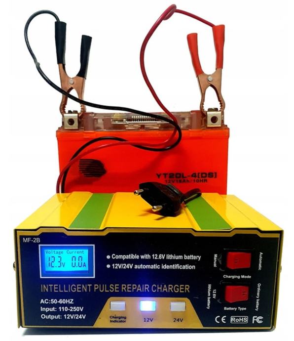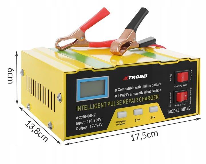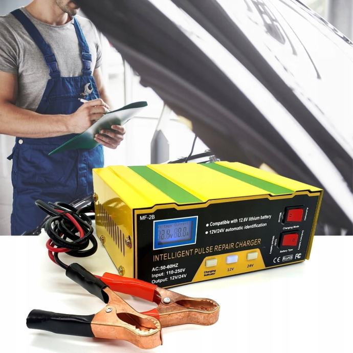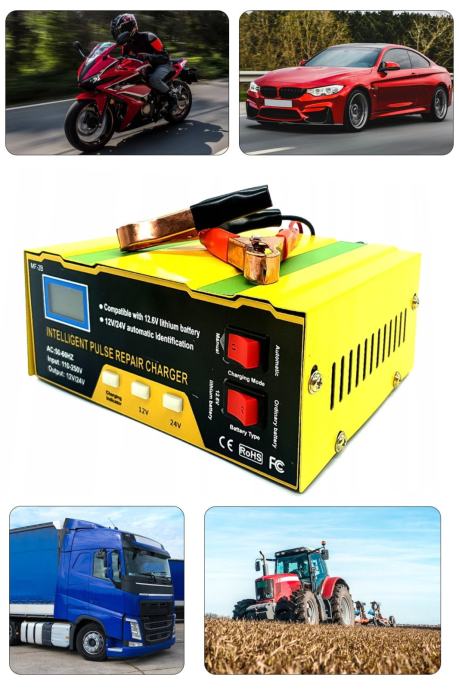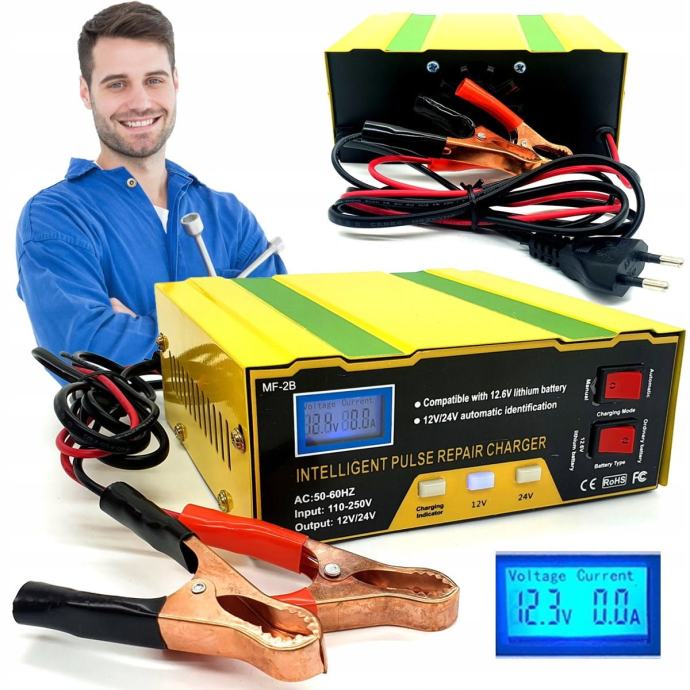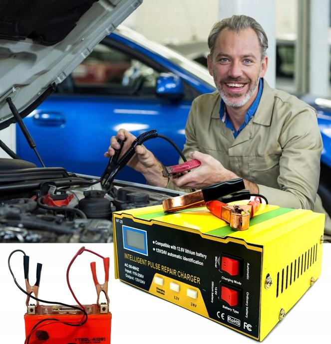 Profesionalni uređaj za punjenje baterija u automobilima, motorima, kosilicama travnjaka i motornim brodovima. To je univerzalni, moderni 12/24V punjač, koji omogućava punjenje različitih vrsta baterija: tradicionalni, litij, kalcij, servis i održavanje bez održavanja. Izuzetno je jednostavan za upotrebu tako da svi mogu lako napuniti vozilo za napajanje vozila. Ima upravljačku ploču i zaslon l e d koji jasno prikazuje parametre.