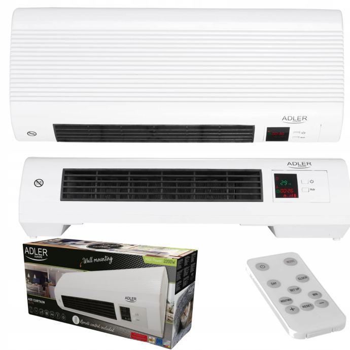 Zračna zavjesa AD 7714 sa 2200W učinkovito rješava problem hlađenja unutrašnjosti zbog učestalog otvaranja vrata, što je posebno korisno u trgovinama, javnim zgradama, restoranima i institucijama. Grijanjem vanjskog zraka koji je već na ulazu, troškovi grijanja unutrašnjosti su ograničeni. Zračna zavjesa AD 7714 nudi mogućnost postavljanja dana u tjednu i radnog vremena. Uređaj je opremljen funkcijom otkrivanja otvorenog prozora (kada se sobna temperatura smanji za 10 ° C, uređaj automatski isključuje grijanje). Proizvod ima funkciju automatske kontrole temperature, uređaj će se uključiti i isključiti kako bi održao postavljenu razinu temperature. Prikladno je upravljati daljinskim upravljačem.