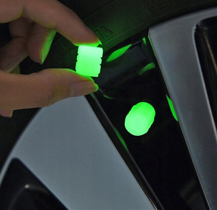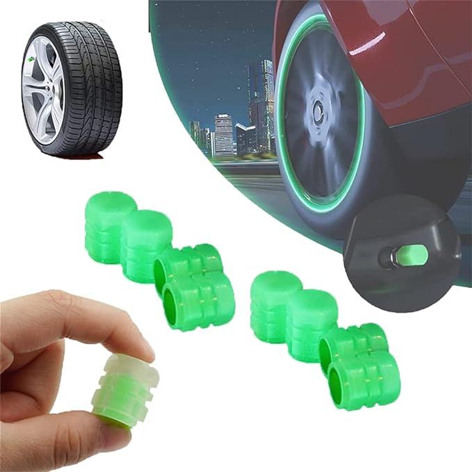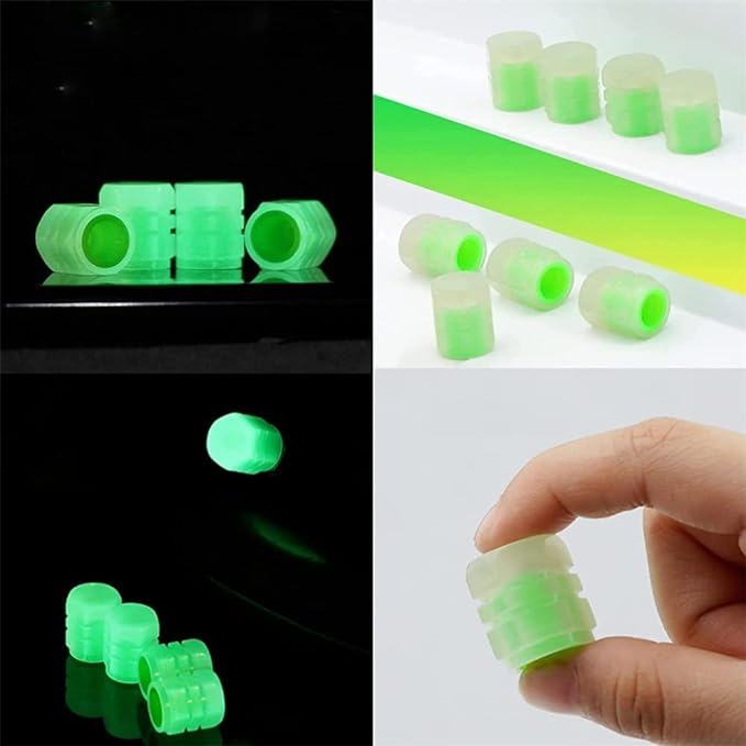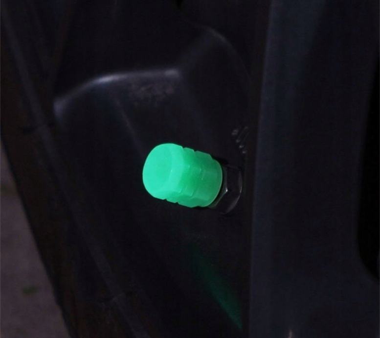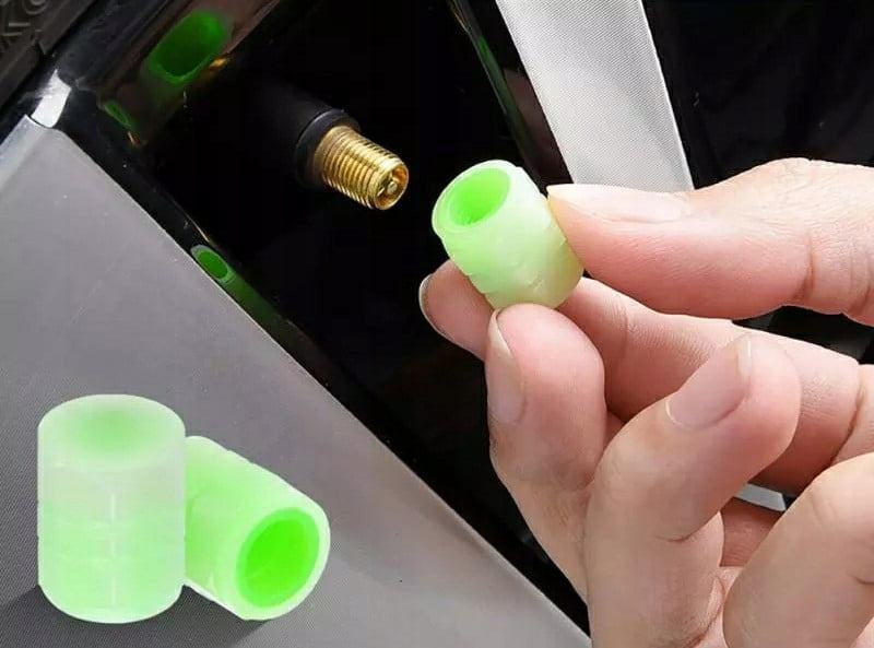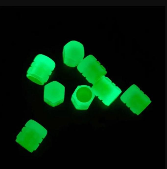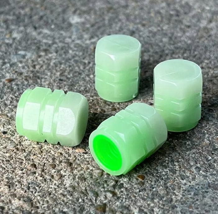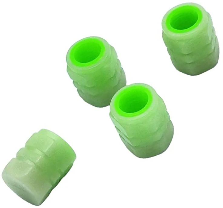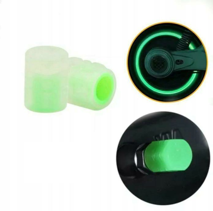 Skup od dvije kapice fluorescentnih ventila. Pokrivači sjaju zeleno, osiguravajući da kotači u mraku izgledaju privlačno. Kompatibilno s ventilima za biciklizam, motore i automobile.