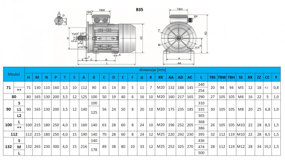 12613- 132kW-ELEKTRO MOTOR Y3 315L2-6_985vrt 3Faz nogice+prirobnica-B3B5