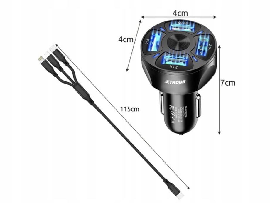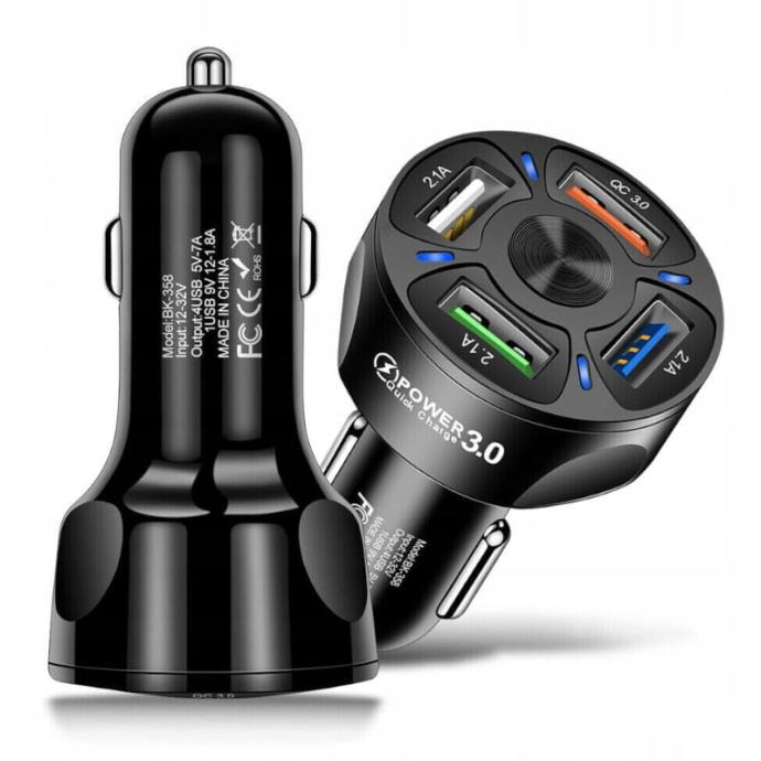 4x USB 3.0 brzi auto punjač 12-32V sa LED 3A + kabel za punjenje