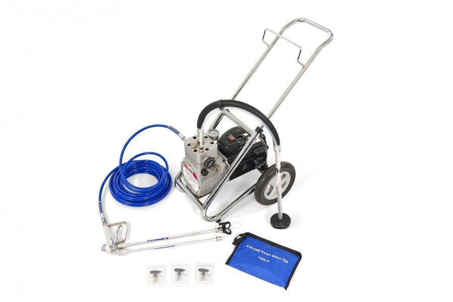 prskanje zidne boje ne funkcionira dobro s normalnim raspršivačem boje koji radi na komprimirani zrakzidna je boja pregusta (previskozna) za toda biste brzo i bez pruga mogli nanijeti zidne boje na zidove i strop, potrebna vam je posebna opremaovaj visokotlačni stroj za prskanje zidova tako je poseban uređajbezzračni raspršivač boje pumpa sve vrste zidnih boja pod vrlo visokim tlakom kroz visokotlačno crijevo dugo 10 metara na pištolj za prskanjemlaznica ovog raspršivača može se okretati tako da se može koristiti i vodoravno i okomitotada se u ovu mlaznicu mogu smjestiti razne mlaznice s različitim širinama prskanjaova mlaznica može biti usmjerena (lijevo - desno) za prskanje teško dostupnih mjestauz ovaj set se standardno isporučuje dodatna mlaznicada bi se mogao dulji potez nanositi prilikom prskanja velikih površina (što je često zid), uključen je i produžetak raspršivača koji postavlja mlaznicu na otprilike 40 cm od drške pištoljajedinica crpke stoji na čvrstom metalnom postolju i stoga ju je lako postaviti bilo gdje, bez da padnena izlazu iz crpne jedinice postavljen je manometar, tako da možete brzo pročitati koliki pritisak prskatejedinica crpke opremljena je prekidačem koji mijenja smjer crpke i tako pumpa i ulazno i izlazno crijevo prazno nakon upotrebena ulaznoj strani, neiskorištena boja tada izlazi iz usisnog crijeva, tako da se ovo crijevo jednostavno može staviti u kantu sa zidnom bojom kako bi se u nju napuhalo puno bojeda biste u potpunosti uklonili boju iz ovog HBM zidnog raspršivača i očistili raspršivač, možete jednostavno uroniti mlaznicu u kantu vode da biste ostatak boje isprali vodomna ulaznoj strani pumpe, silikonsko ulazno crijevo ima veliku ponderiranu usisnu mlaznicu s filterom (metalna rešetka) na krajustoga ova ponderirana usisna mlaznica ostaje na svom mjestu na dnu kante zidne boje i kroz filter neće usisati čestice tvrde bojespajanje ovog ulaznog crijeva na pumpnu jedinicu u potpunosti se može okretati za 360 °, tako da možete slobodno odabrati mjesto postavljanja crpne jedinice u odnosu na kantu bojeulazno crijevo također se lako može odvojiti od crpne jedinice metalnom kopčomako želite bojiti zid brzo i bez tragova, to možete učiniti pomoću ove profesionalne prskalice za zid koja zna nanijeti boju na najmanje pukotine i šavove tempom u kojem se tri osobe s valjkom ne mogu natjecatiTehniči opis: snaga 1500 Wattamaksimalni prinos 4 litre u minutimaksimalni pritisak prskanja 3000 PSI. / 200 baradimenzije crijeva za boju 6,4 / 12,3 mm x 10 metaradužina kabela 1,8 metaraveličina 55,5 x 44,5 x 51,5 cm. (D x Š x V)težina 33 Kg]]>