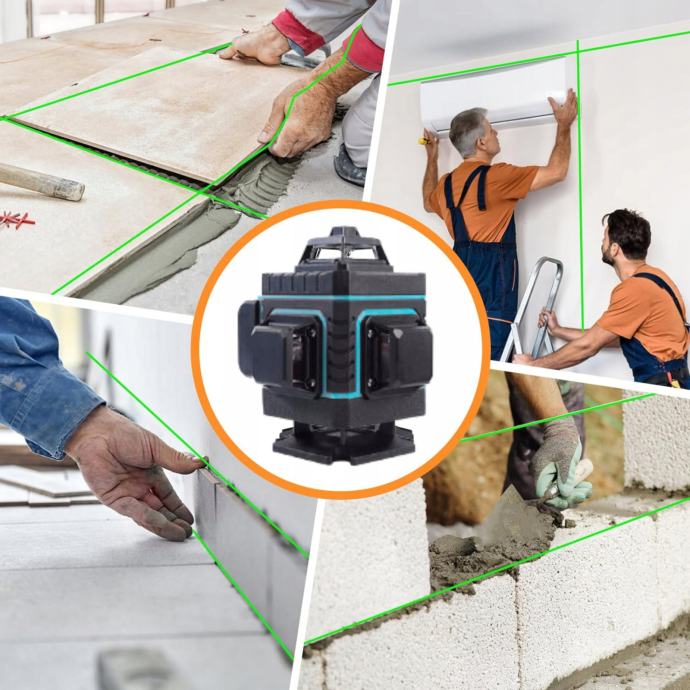 Aku. 16 linijski 360 zeleni gradbeni laserski nivelir 2x baterija + al