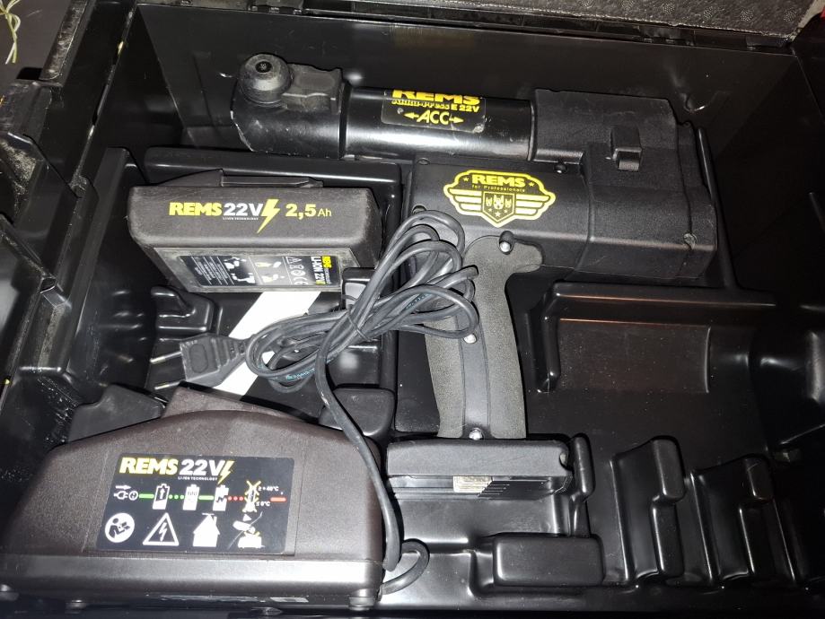 REMS akumulatorska presa na 22V s baterijom kapaciteta 2,5 Ah i punjačem.