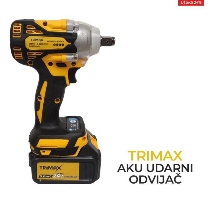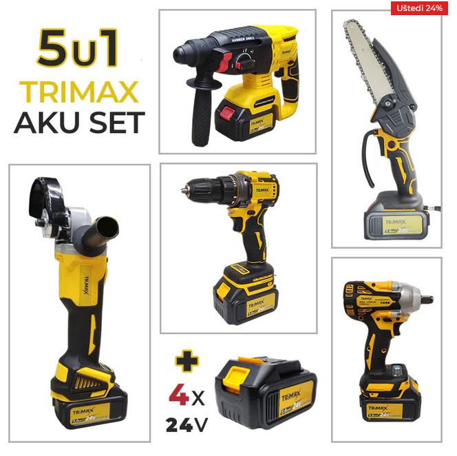 Uz set dolaze ukupno 4 baterije 5AH Li-ion , omogućavajući neprekidan rad bez čestih punjenja. Sve baterije kompatibilne su sa svim Trimax, Garten Kaiser i Makita alatima.