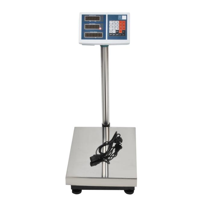 Podešavanje specifikacije -težine; Tare funkcija; Sposobnost rada na temperaturi: od -10 do 40 stupnjeva; Područje vaganja: do 100 kg; Preciznost: 50g; Snaga: mreža 220V i baterija (ugrađena -in; 4V/4AH); Dimenzije (visina/širina/duljina): 65x30x40cm