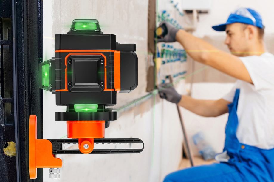 Nivelir ima 16 zelenih laserskih linija koje omogućuju precizno mjerenje i izravnavanje na različitim površinama. Uređaj je opremljen s dvije baterije, pružajući dugi život i pružajući dužu upotrebu bez punjenja.