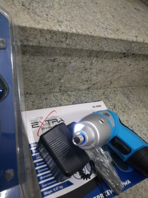 Imamo I odvijač EXTRA sa istom voltažom,zatezanje 4 Nm,250okr/min,baterija 800 mAh I led osvijetljenjem po istoj cijeni.