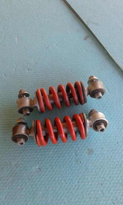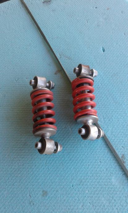 2 komada amortizera ukupne dužine svega 15 cm . Debljina spirale je 42 mm . Razmak rupa je 125 mm za šarafe M 8 mm . Cijena je 4 eura po komadu ili oba za 7 eur